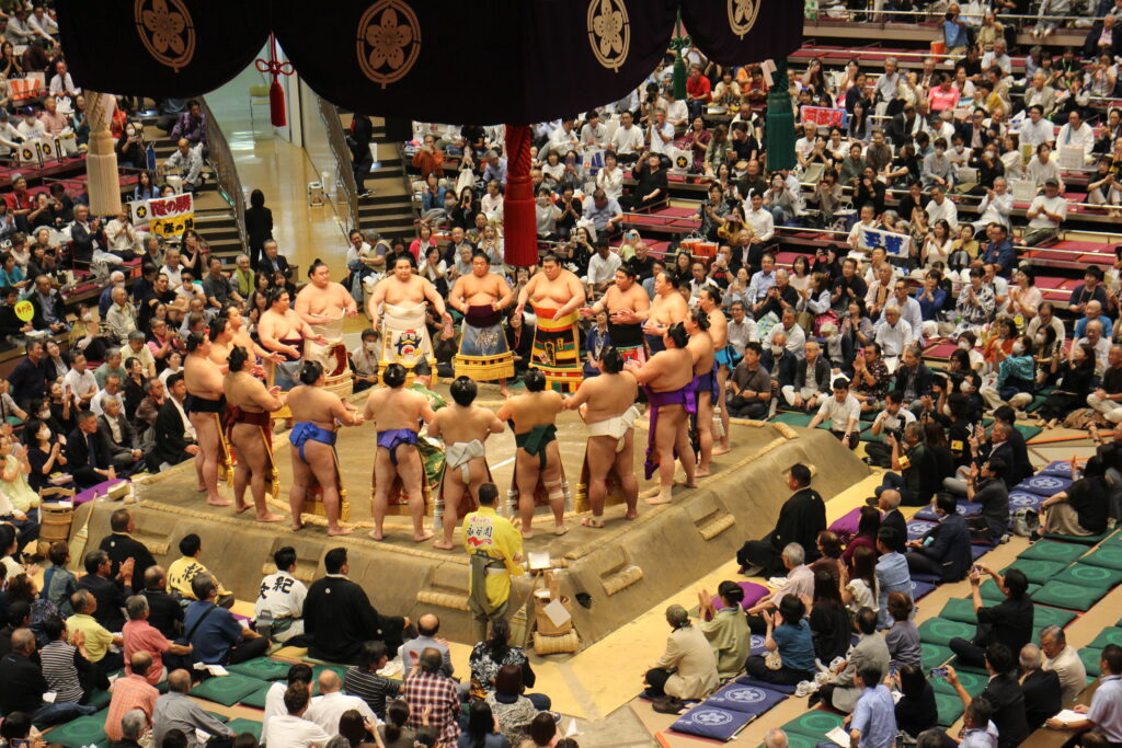 チーム大田稲門会は、十両土俵入り~取り組み開始の14時過ぎ頃から随時入場します。