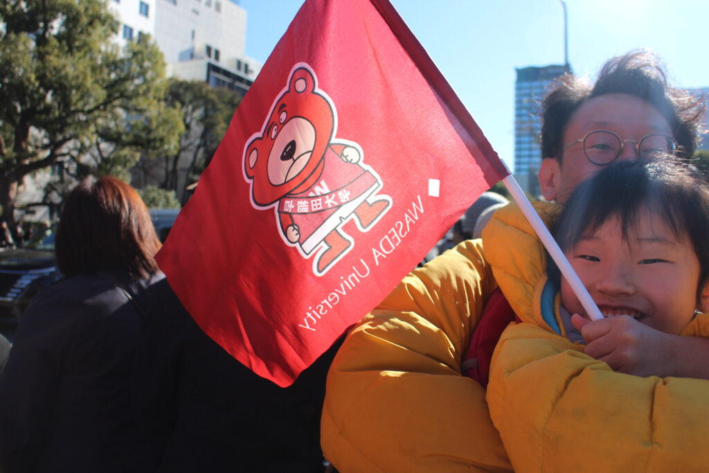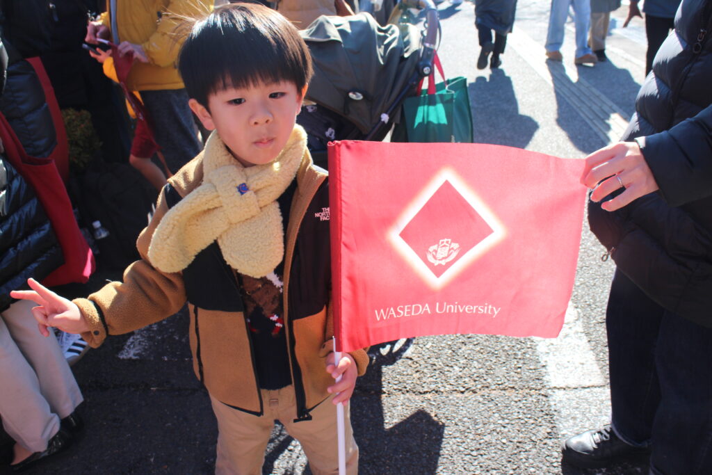 (追記)ここ数年、駅伝応援で港稲門会を知りその後入会する方が目立ちます。沿道に建てた「早稲田大学」の幟旗の威力でしょう。もう一つ今回目立ったのは「未来の校友」たちの姿!早稲田の小旗を持って応援する可愛い姿に、十数年後の母校を託したいと思いました。