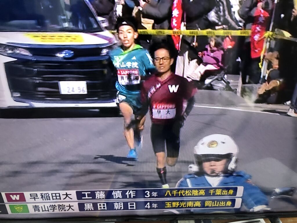 初日2日の往路では、最終山登り5区を中央大学に続く2位で早稲田エースの「山の名探偵」工藤慎作選手に襷を繋ぎ、9.8キロ時点(大平台付近)で中央大学を捉えて首位に浮上した時は誰もが「18年ぶりの往路優勝!!」を確信したかと思いましたが、まさか・まさかの青山学院選手の規格外の激走でゴール芦ノ湖まで残り1.5キロの時点で逆転を許し2位でのフィニッシュとなりました。しかし、9年ぶりの往路2位!トップとはわずか18秒差、翌日復路で逆転を狙いたいところです。