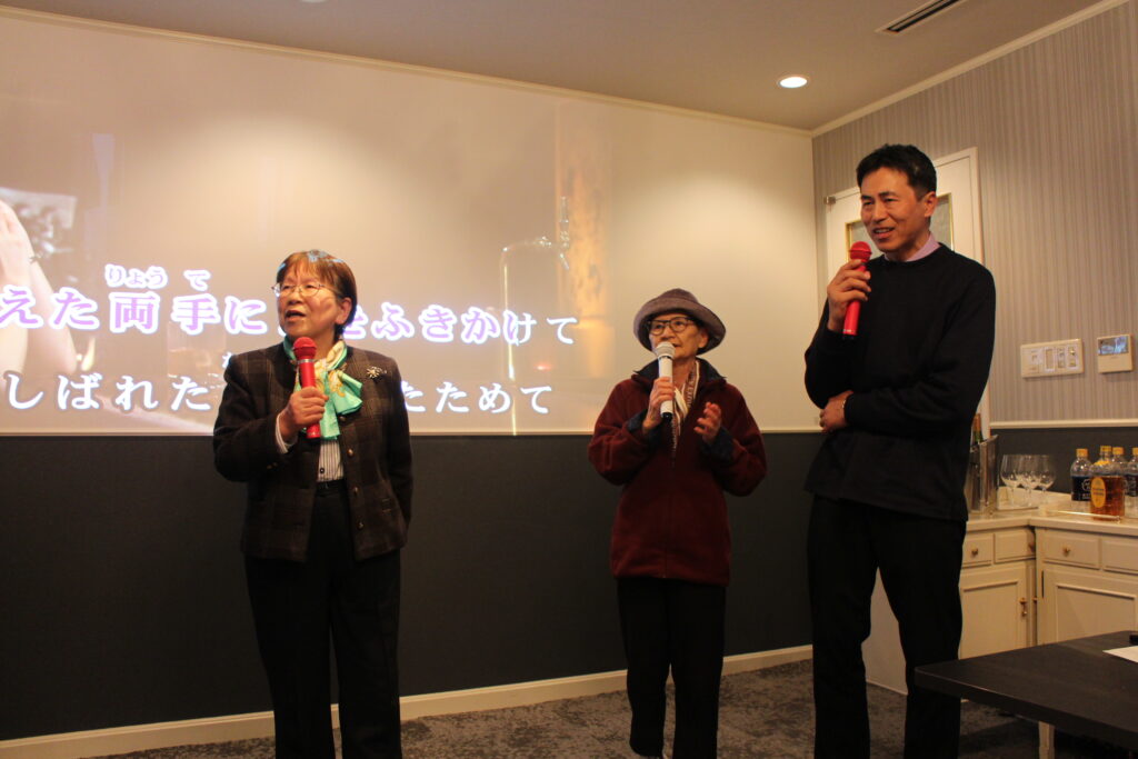 今回初参加の大塚会員のご主人は「冬のリビエラ」で口火を切り、やはり初参加の大塚さんのご友人坂本さんは「愛の賛歌」を披露。